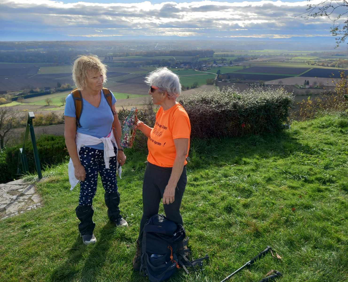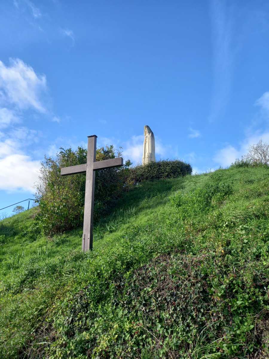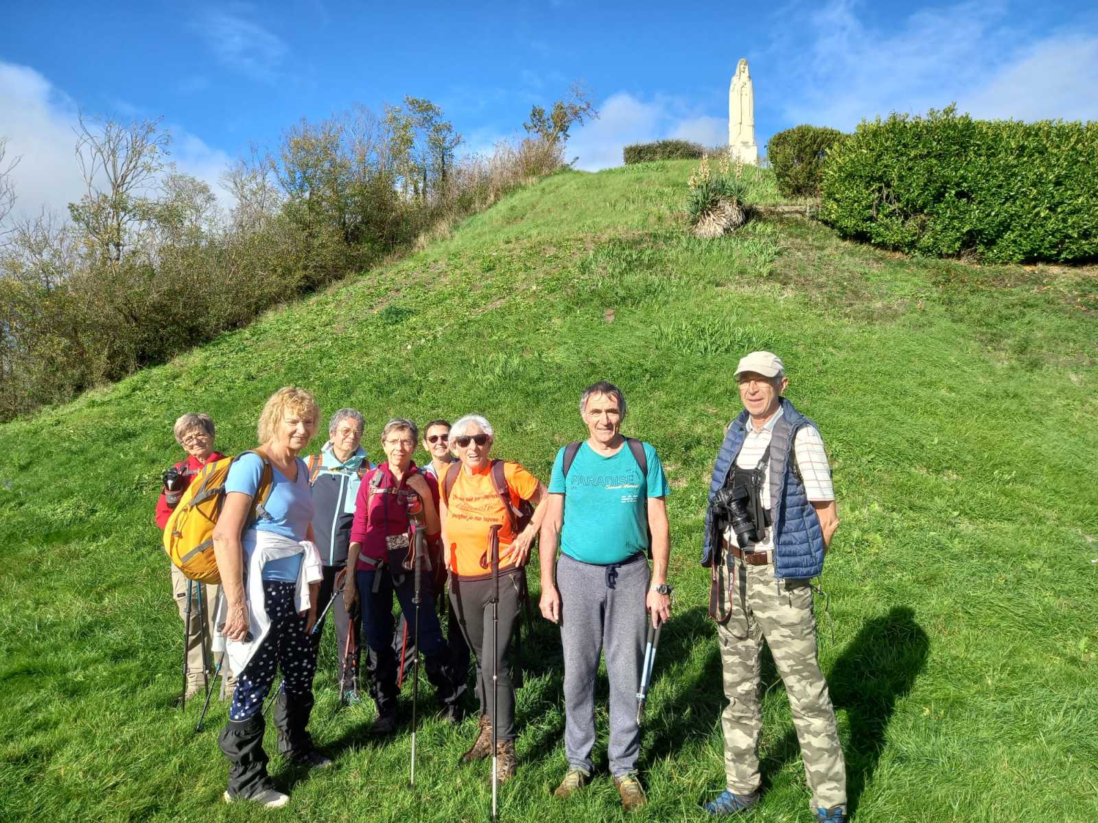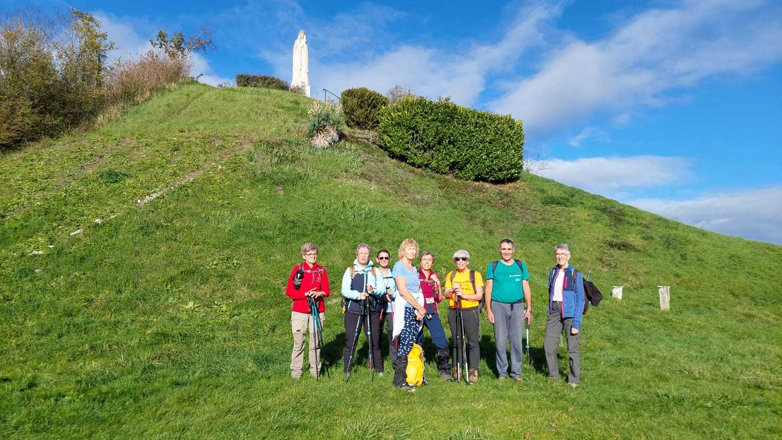 Les randonneurs se dirigent vers la butte de Montgacon, construite sur les ruines d’un château démoli en 1633. Aujourd’hui se dresse la statue de Notre-Dame des moissons, qui veille sur les cultures intensives de la région. Vue panoramique sur le Cézallier, les monts Dore, la Chaîne des Puys, la Limagne, le Livradois-Forez et les Bois Noirs.