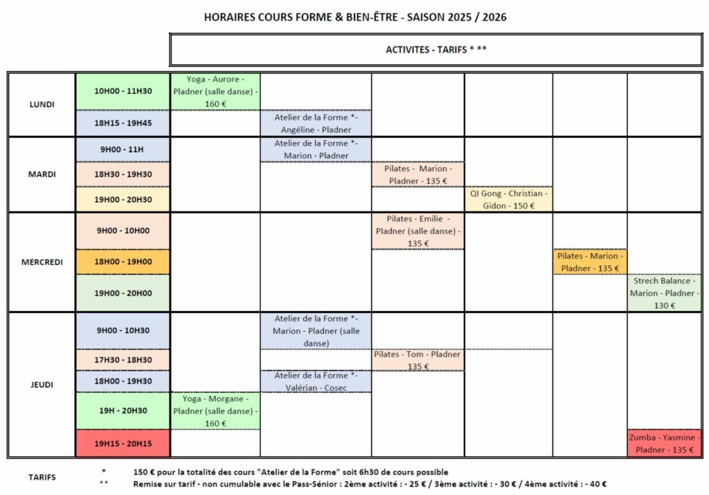 Voir les tarifs dans les fiches d’inscription de chaque activité.