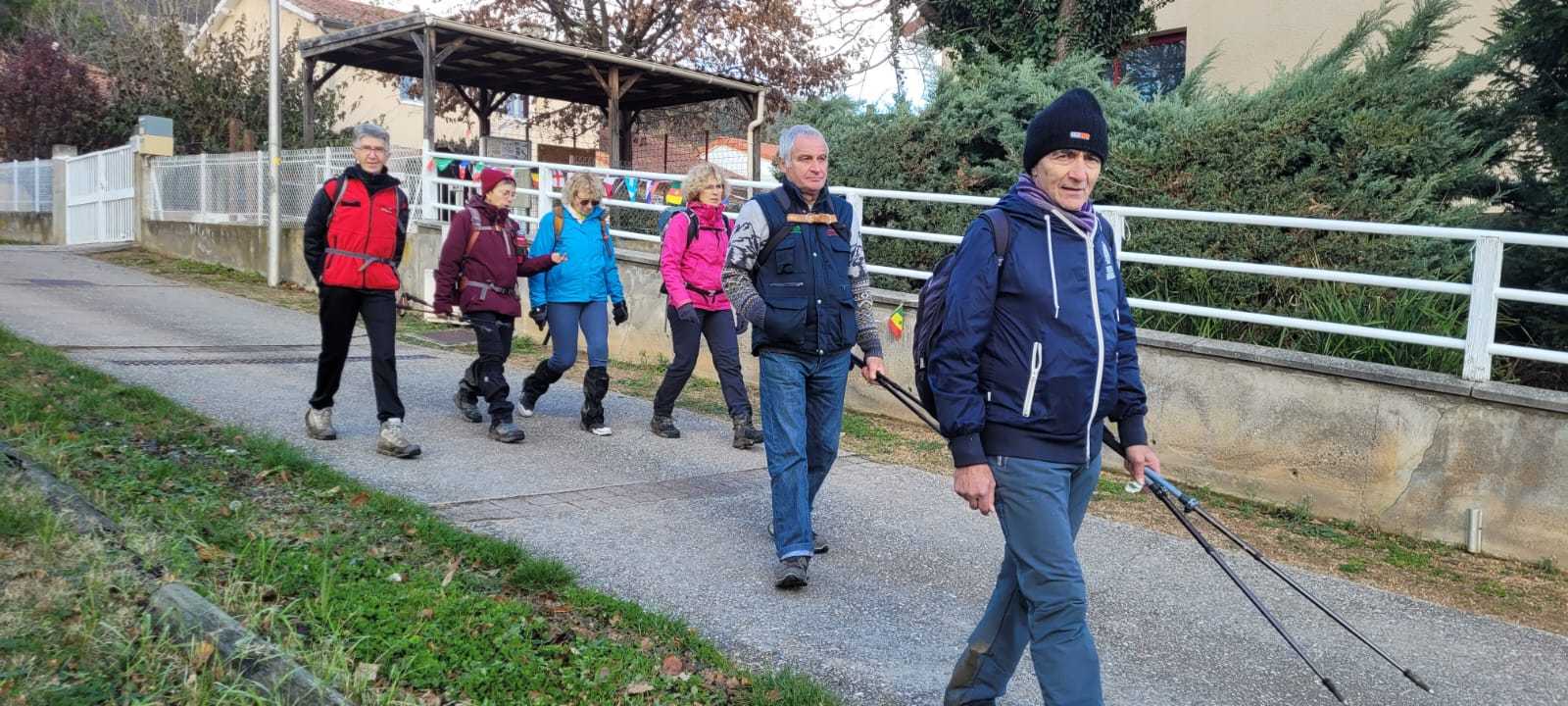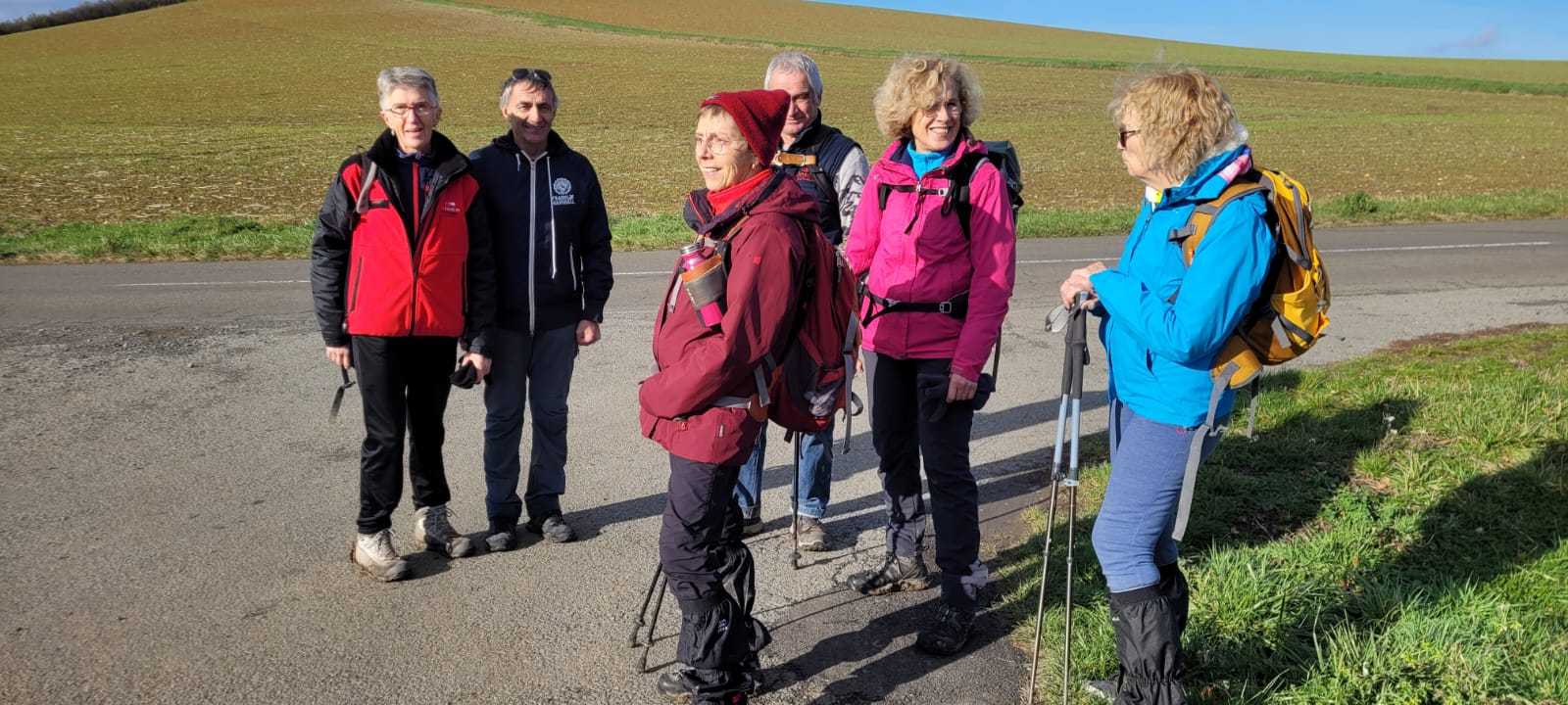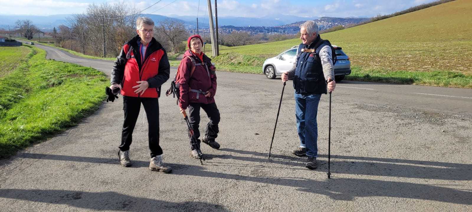 Ils n’étaient pas nombreux nos vaillants randonneurs ce jeudi 27 novembre, mais toujours aussi résolus et plein d’entrain. Ils sont partis de Pérignat-sur-Allier, un joli village surveillé par des châteaux perchés, ceux de Saint-Bonnet-ès-Allier, Coppel, Busséol ou les ruines du gros Turluron. Au fil du chemin, un patchwork des champs, puis l’horizon s’ouvre et offre une vue sur le château de Saint-Bonnet-ès-Allier. Au loin, le regard se porte sur la chaîne des Puys, le Puy –de-Mur, les monts du Forez, et le massif du Sancy, tous auréolés d’une crête au blanc manteau d’hiver. Nos sept marcheurs flirtent avec la terre amoureuse, qui colle aux lourdes chaussures, un souvenir de cette agréable balade aux confins de la Comté.