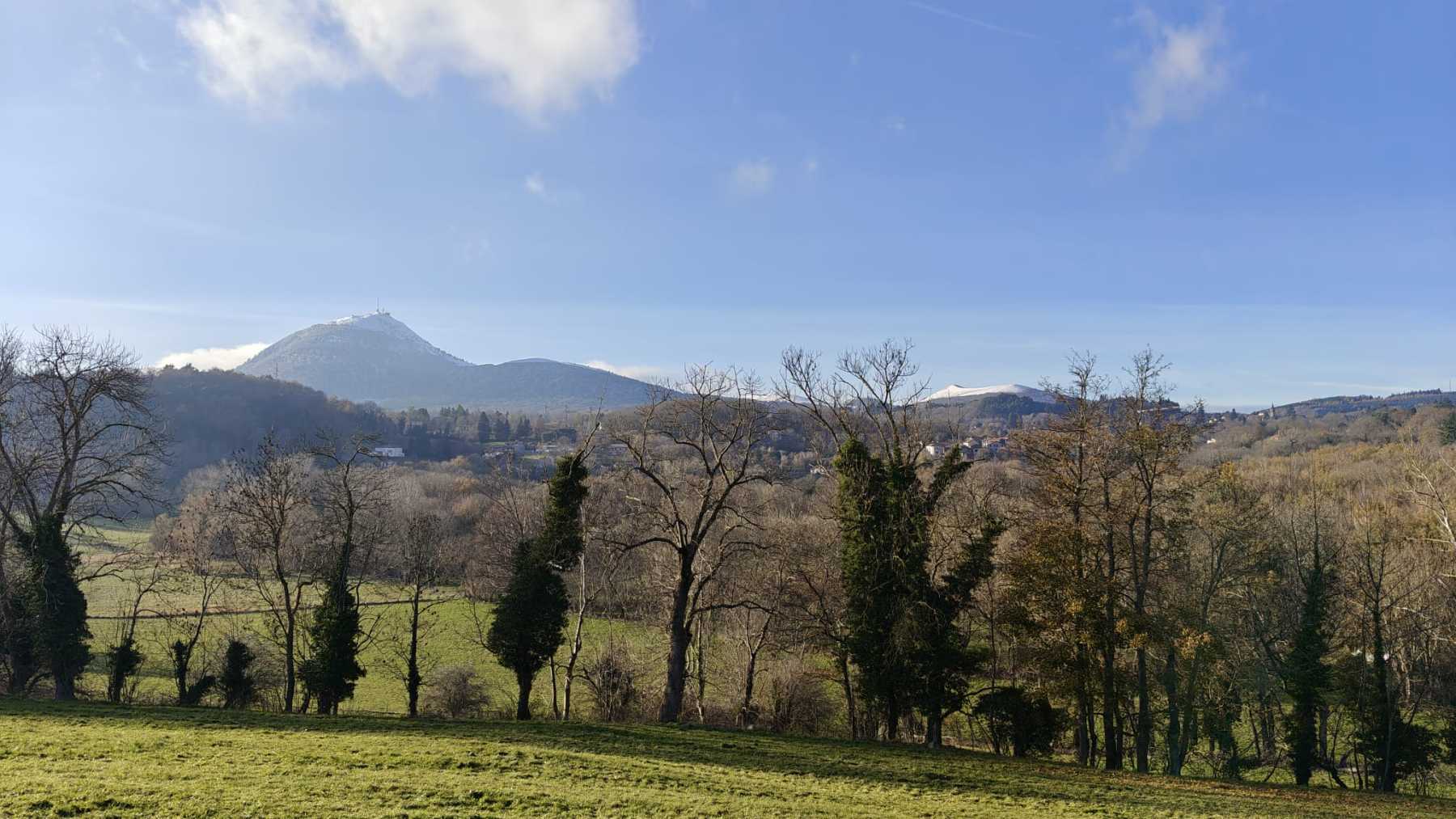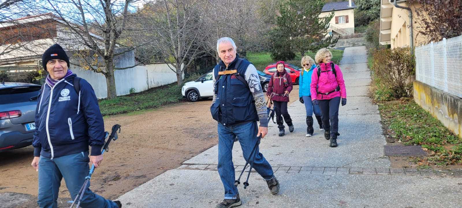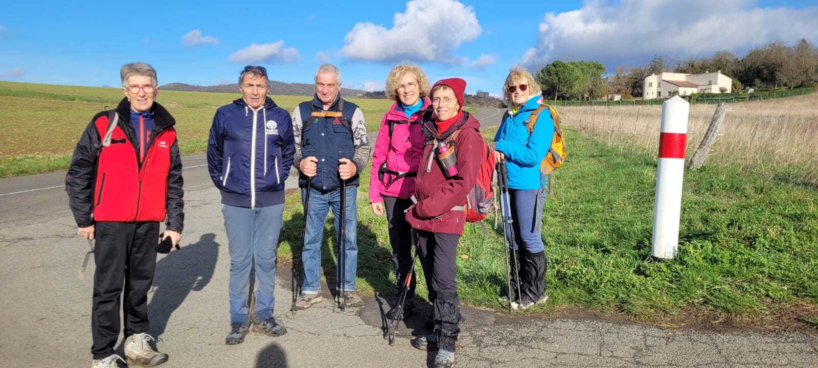 Ils n’étaient pas nombreux nos vaillants randonneurs ce jeudi 27 novembre, mais toujours aussi résolus et plein d’entrain. Ils sont partis de Pérignat-sur-Allier, un joli village surveillé par des châteaux perchés, ceux de Saint-Bonnet-ès-Allier, Coppel, Busséol ou les ruines du gros Turluron. Au fil du chemin, un patchwork des champs, puis l’horizon s’ouvre et offre une vue sur le château de Saint-Bonnet-ès-Allier. Au loin, le regard se porte sur la chaîne des Puys, le Puy –de-Mur, les monts du Forez, et le massif du Sancy, tous auréolés d’une crête au blanc manteau d’hiver. Nos sept marcheurs flirtent avec la terre amoureuse, qui colle aux lourdes chaussures, un souvenir de cette agréable balade aux confins de la Comté.