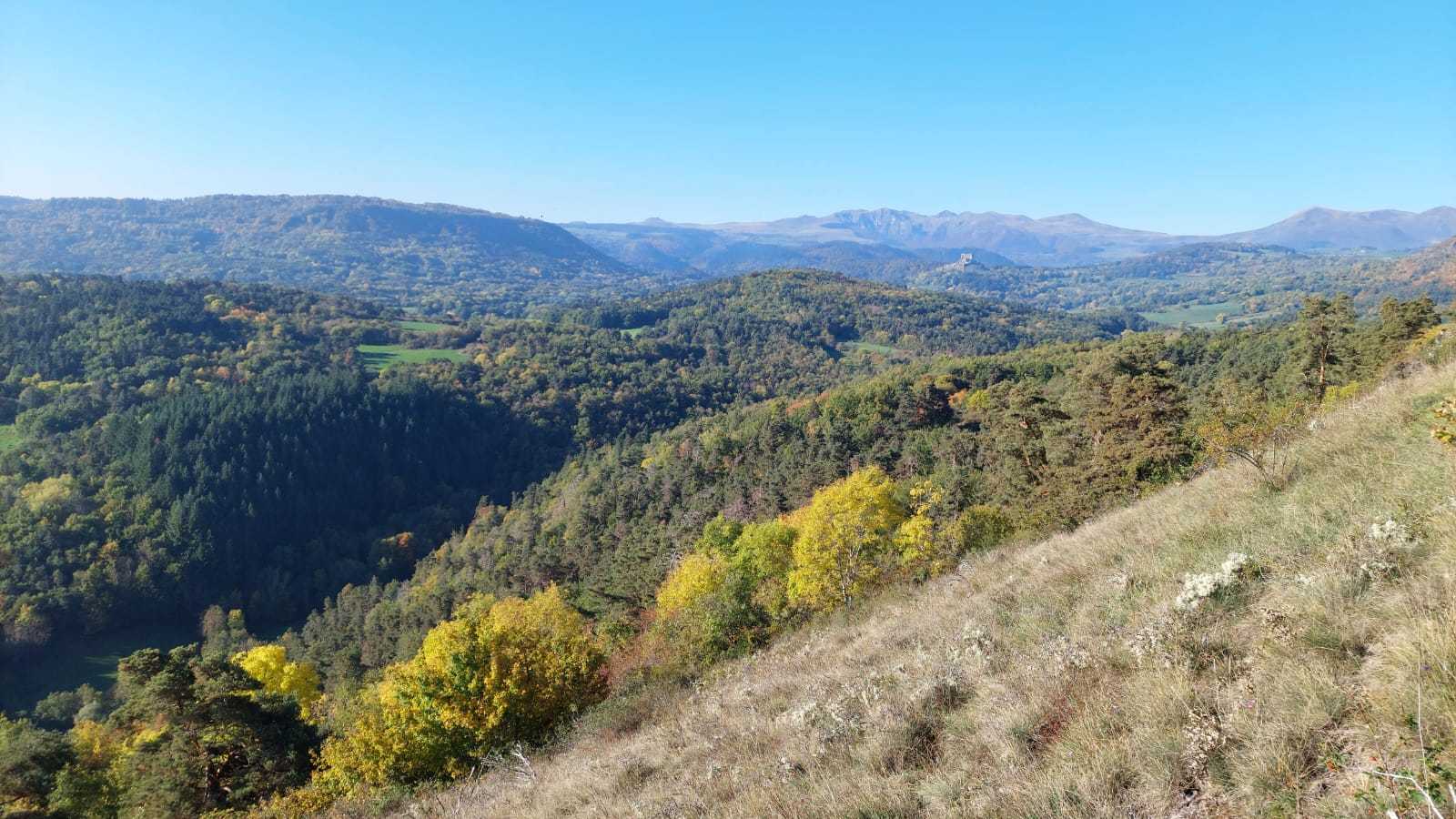 Après une mise en jambes douce, les randonneurs ont emprunté les sentiers forestiers menant à Murol, avec en ligne de mire son imposant château médiéval, perché sur son promontoire volcanique, et un passage obligé par les grottes de Châteauneuf.